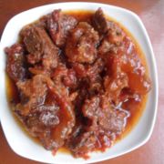 腱子肉、油、盐、红辣椒、番茄、生抽、老抽、料酒、大葱、冰糖、茴香。