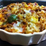 熟米饭、中号土豆、中号洋葱、青椒、腊肠、大番茄、意大利综合香料、批萨草、盐、胡椒粉、奶酪粉、马苏里拉芝士。
