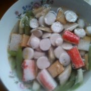 丝瓜、鱼丸、鱼豆腐、蟹棒、盐。