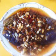 长茄子、肉末、蒜蓉。