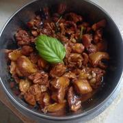 三黄鸡、罗勒叶、酱油、白酒、麻油、生姜、八角、蒜头、糖、鸡粉、老抽。