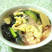 挂面、苋菜、鸡肉火腿、鸡蛋、黄瓜、葱花、香油、盐、鸡精、胡椒粉。