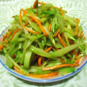 素肠干、黄瓜、麻酱、蒜末、盐、香油、醋、鸡精。