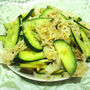 面条、黄瓜、葱、蒜蓉辣酱、香油、醋。