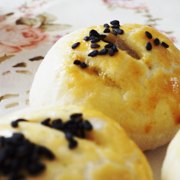 高筋面粉、糖粉、红豆沙、黑芝麻、黄油、鸡蛋液、鸡蛋液。