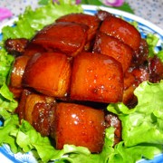 帯皮猪肉、姜、李锦记红烧汁、油。