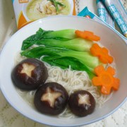 清鸡高汤、香菇、龙须挂面、油菜、胡萝卜。