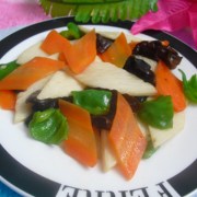 山药、胡萝卜、青椒、黑木耳、葱、盐、醋。