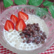 西米、自制蜜红豆、草莓、牛奶。