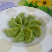 荠菜、猪肉馅、大虾、木耳、姜、菠菜、葱。