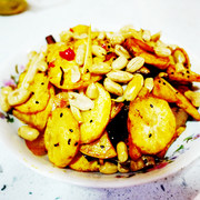 千张、红椒、洋葱、胡萝卜、肉丝、蒜头、芹菜叶、盐、胡椒、味精、郫县豆瓣、老抽。