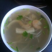 金针菇、粉条、虾干、冻豆腐、生姜、香菜、葱、盐、鸡精、糖、料酒、胡椒粉。