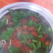 西胡芦、西红柿、猪肉、葱、姜、蒜、盐、糖。