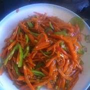 胡萝卜、尖椒、醋、生抽、糖、盐、淀粉、生姜、葱、泡椒。
