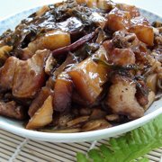 五花肉、梅菜、葱、姜、八角、干辣椒、冰糖、盐、生抽、香醋、生粉。