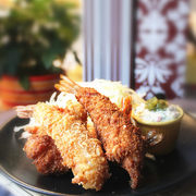 大虾、卷心菜、鸡蛋、洋葱、酸黄瓜、美乃滋、柠檬汁、盐、面粉、面包糠、油。