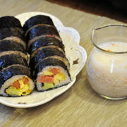米饭、肉松、黄瓜条、蛋皮、火腿肠、康乐醋、丘比沙拉酱。