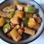 莴苣、香菇、山药、青椒、葱、姜、醋。
