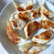 饺皮、肉馅、芹菜、鸡蛋、葱、盐、鸡精、五香粉、醋。