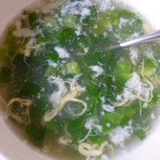 年糕、生菜、鸡蛋、葱、盐、鸡精、芝麻油。