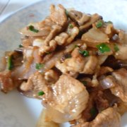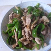 猪肉、青椒、葱、姜、盐、鸡精、淀粉、老抽。