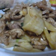 瘦肉、茭白、葱、姜、草菇老抽、盐、鸡精。