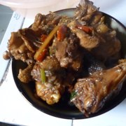 土鸡、八角、葱、姜、料酒、糖、盐、鸡精、老抽、酱油。