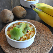 面包、牛奶、淡奶油、白糖、炼奶、鸡蛋、低筋面粉、香蕉、猕猴桃、核桃、香草精、肉桂粉。