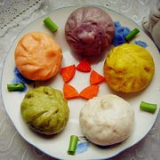 面粉、菠菜、胡萝卜、紫米、南瓜、肉馅、鸡精、酱油、盐、姜、蒜、葱、酵母。