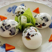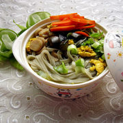 茄子、挂面、鸡蛋、火腿肠、鸡精、盐、葱花、豆油。