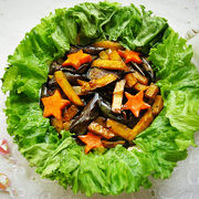 茄子、土豆、胡萝卜、葱、姜、蒜、老抽、酱油、盐、鸡精、豆油。