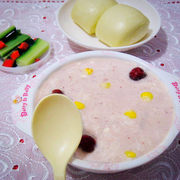 米饭、奶粉、豆沙、玉米粒、桂圆、糖。