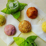糯米粉、淀粉、奶粉、水、豆沙、黄豆粉、熟芝麻、紫米粉、绿豆粉、果酱、豆油。