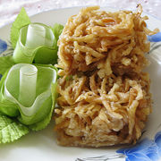 牛肉馅、洋葱、土豆、面包糠、淀粉、鸡蛋、油、五香粉、盐、酱油。