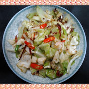 包菜、红指天椒、干辣椒、蒜米、花椒粒、肉姜、盐、生抽、味精、香醋。