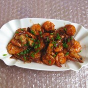 青虾、葱花、盐、糖、蚝油、油、番茄酱、胡椒粉。