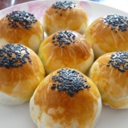 中筋面粉、糖粉、黄油、水、黄油、低筋面粉、红豆沙、咸蛋黄、黑芝麻、盐、米酒。