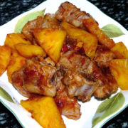 排骨、菠萝、红酒、辣椒、葱头或大葱、亨氏番茄酱、盐。