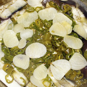 茄子、小尖椒、大蒜、盐、鸡精、生菜籽油。