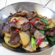 牛里脊、土豆、洋葱、生姜、大蒜、干辣椒、花椒、蒜苗、盐、料酒、生抽、豆瓣酱、鸡精。