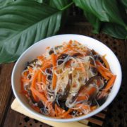 粉丝、胡萝卜、黑木耳、大蒜、盐、生抽、香醋、鸡精、香油。