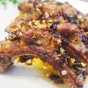 排骨、蒜、葱、辣三丁油辣酱、生抽、盐、油、白胡椒粉。