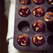低粉、黑巧克力、可可粉、无盐黄油、朗姆酒、红糖、白糖、泡打粉、鸡蛋、盐、蔓越莓干、开心果仁、腰果、杏仁。