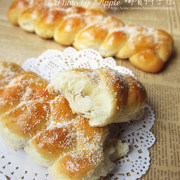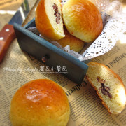 高筋面粉、全蛋、黄油、水、干酵母、盐、砂糖、奶粉、蜜豆。
