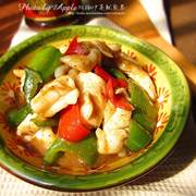 新鲜鱿鱼、青椒、红椒、沙茶酱、蒜片、姜片、鸡精、五香粉、盐、胡椒粉、干淀粉、鱼露、香麻油。