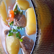 土豆、牛肉、番茄、姜、葱、油、盐、生抽。