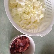 猪里脊、包菜、豆瓣酱、葱、蒜、高汤精。