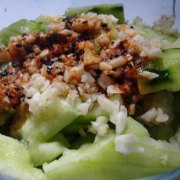 黄瓜、大蒜、辣椒油、陈醋、鸡精、酱油、白糖。