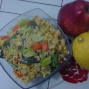 大米饭、鸡蛋、胡萝卜、葱、蒜苗、小青菜、盐、味精、十三香、胡椒粉、香油。