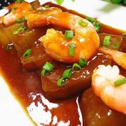 虾、冬瓜、酱油、油、葱、料酒、蒸鱼豉油、姜、水淀粉。